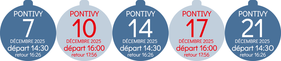 Contrairement à  ce qui avait été annoncé, le départ des Trains du Père Noël des MERCREDIS se fera uniquement depuis la gare de PONTIVY. Les horaires de ces mêmes trains ont évolué.